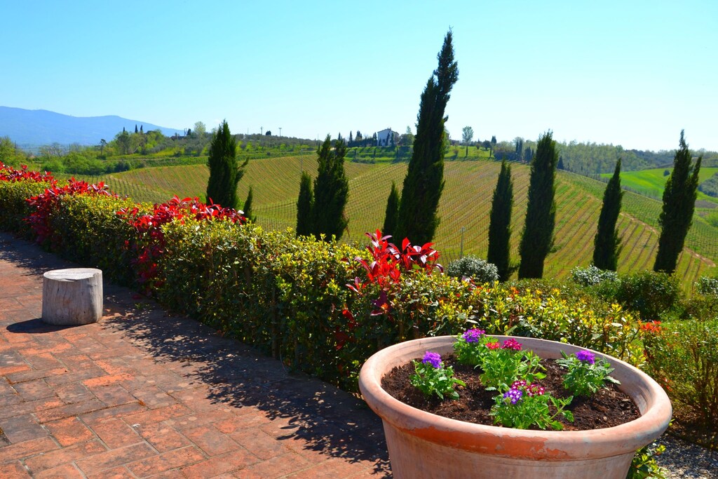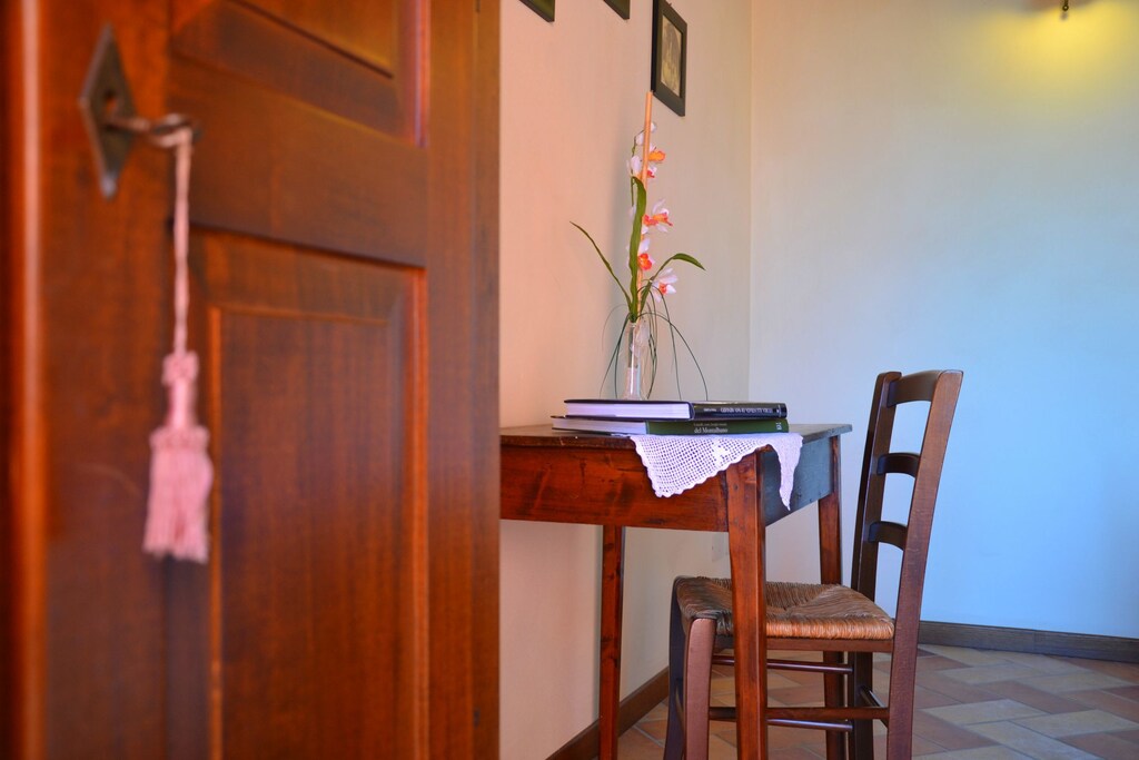 Each flat has been tastefully furnished in a rustic Tuscan style, with exposed beams, a fully equipped kitchen and a private terrace/outdoor area with sun umbrella, table and garden chairs for dining out and relaxing in the open air. Immersed in the Tuscan countryside you can't pass up a sunset dinner, savouring the scent of roses and the pleasure of a good glass of wine.