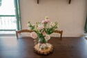 The first floor welcomes you with a spacious living and dining area featuring a TV and dining table, alongside a fully equipped open kitchen with an induction hob, electric kettle, boiling water tap, cooker, hood, coffee machine, microwave, and fridge-freezer. The home includes two cozy bedrooms, one with twin beds and another with a double bed, and a bathroom with a shower, washbasin, toilet, and bidet. Guests can also enjoy a shared barbecue area, garden furniture, and on-site parking, ensuring a comfortable and carefree stay.