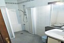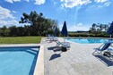 The home offers a master bedroom with a double bed and in-room shower, and a second bedroom with twin beds and an en-suite bathroom featuring a shower, toilet, bidet, and washbasin. A separate bathroom adds convenience, while central heating makes this retreat suitable year-round. The private fenced terrace includes a relaxing bubble bath. Guests also enjoy shared access to a spacious garden with furniture, a barbecue area, and a refreshing outdoor pool with a section for children.