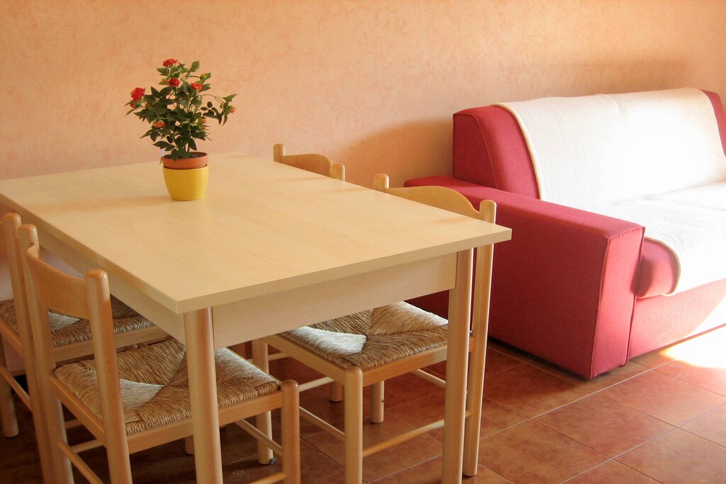 The holiday home is bright and simply furnished, with an air-conditioning facility. It is surrounded by gardens and other green areas, where you can play ball games with children, read a new book in silence, or walk around after meals. On the private terrace, you can enjoy delicious home-cooked meals. You may rent a cot and a high chair for an additional fee here.