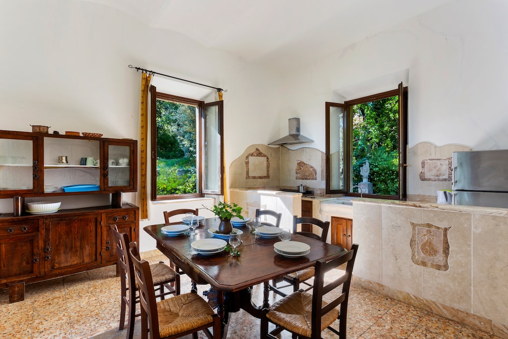 This vintage holiday home with 3 bedrooms has charming exteriors with a vast blue heatable swimming pool for taking a refreshing dive during summers and a private furnished garden for relaxing with a mug of hot chocolate. Ideal for 8 people, generally a family with children or groups, it has lovely travertine, sandstone and bronze work in the interiors and classic furniture.