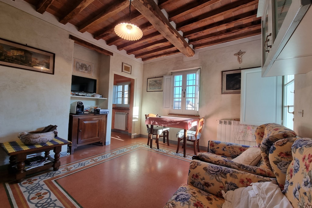 This romantic, country-style holiday home for two people with an option for three is located in Orbicciano and in an ideal location between Lucca and Versilia with its seaside resorts of Viareggio and Forte dei Marmi.