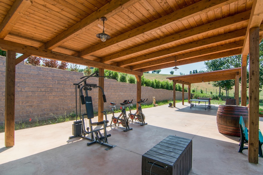 For sports enthusiasts a small fitness area. It will be possible to taste the dishes comfortably in the garden, there is a barbecue area.