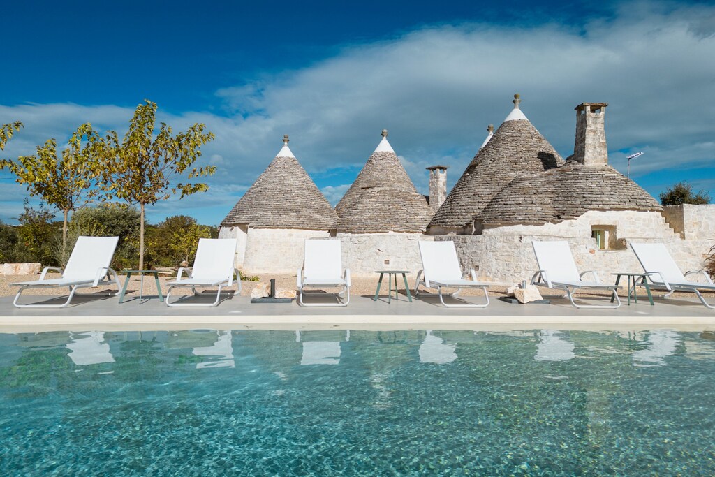In the garden you can splash around in the pool, sunbathe, or enjoy a delicious Apulian meal under the shady verandas. There is enough space here to be together and enjoy the sunny weather.