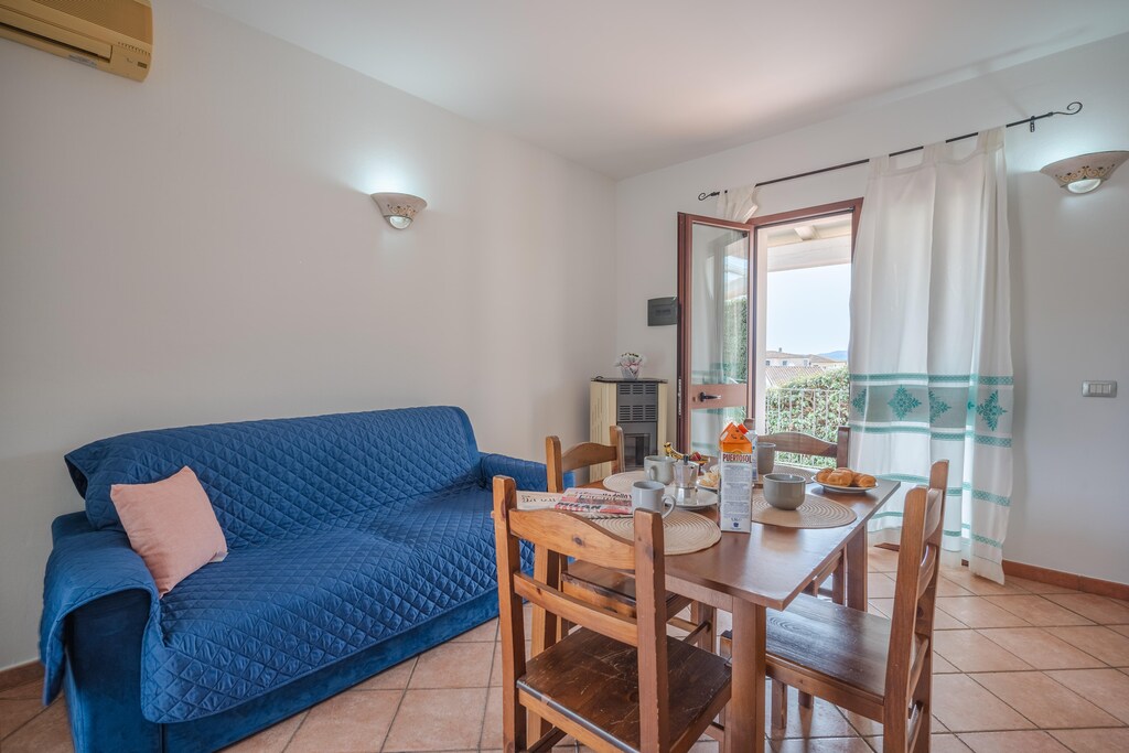 Step into a spacious living room featuring a double sofa bed, perfect for extra guests. Enjoy your favorite shows on the TV, gather around the dining table for meals, or unwind in the cozy seating area. The living room is equipped with air conditioning, ensuring a pleasant atmosphere no matter the weather. The open kitchen is fully equipped, allowing you to prepare delicious home-cooked meals with ease. Modern appliances and ample counter space make cooking a delight.