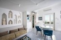 The home features a cozy living room with satellite TV and a well-equipped open kitchen with an oven and microwave. Upstairs, the bedroom includes a double bed and an en-suite bathroom with both a bathtub and shower. A second bathroom on the ground floor includes a washing machine and tumble dryer for added convenience. Air conditioning ensures comfort, and the private terrace is perfect for enjoying morning coffee or evening sunsets. Private parking is also available.