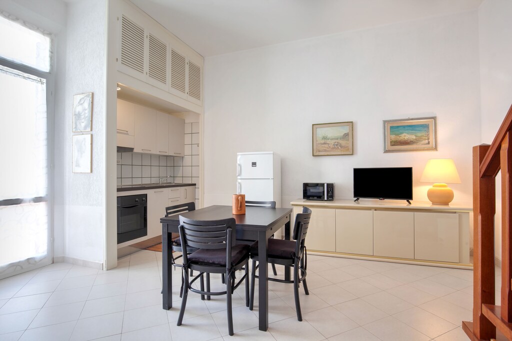Private outdoor area equipped with table, chairs and umbrella. Guests have access to a shared outdoor area with direct access to the port where both during the day and in the evening you will appreciate its atmosphere.
