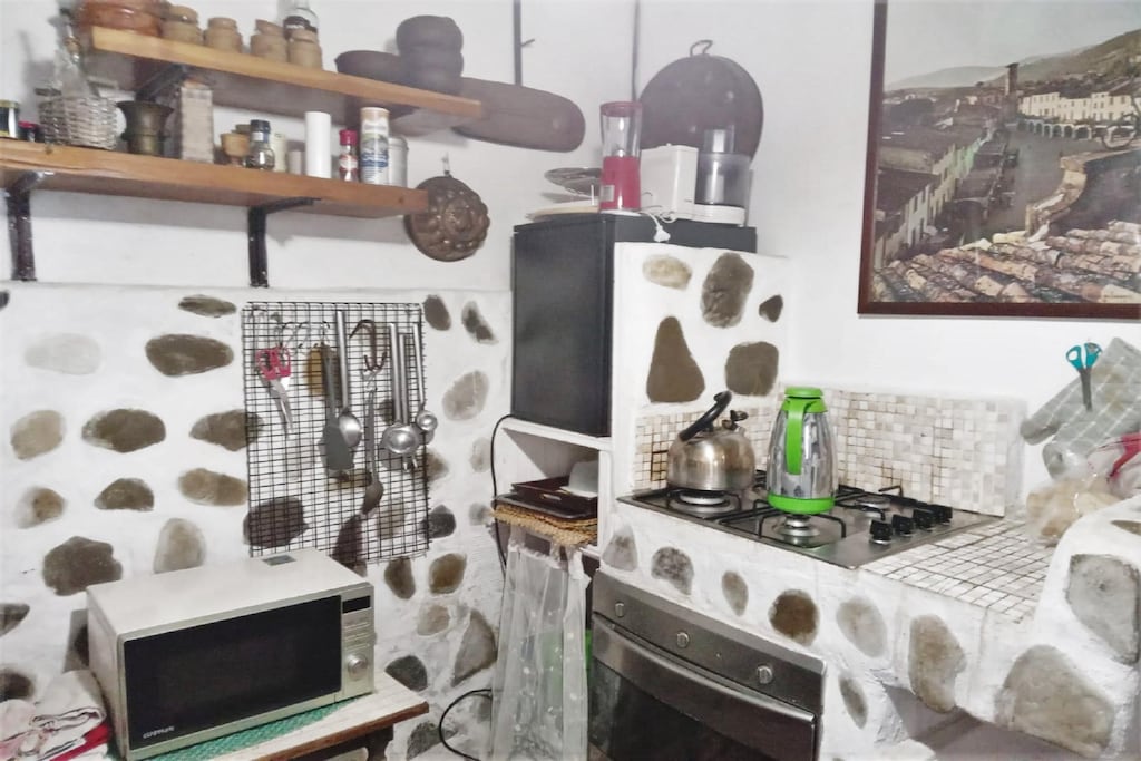 Positiv: sehr nette Besitzerin, sehr tierlieb, außergewöhnliche Aussicht, absolute Ruhe, fußläufig Entfernung zum Ort. Die Räume sind mit viel Liebe zum Detail eingerichtet. Negativ: der Herdenschutzhund der Besitzerin ist über Besuch nicht sehr erfreut. Die Besitzerin wohnt in der Mitte des Hauses. Will man in das obere Zimmer gehen muss man durch den Vorraum der Besitzerin gehen. Die Zimmer sind nicht zusammenhängend. Will man von einem ins andere Zimmer gehen muss man um das Haus herum gehen und das geht nur über sehr steile Treppen. Die Küchen sind nicht nutzbar, uralte Töpfe, alles schmutzig, die Schubladen muffeln, keine Kaffeemaschine, keine Spülmaschine und das gemauerten Spülbecken ist nicht funktionell.Das untere Zimmer ist sehr klein. Das Bad winzig, der Eingang eher für dünne Zwerge. Das Waschbecken zu klein zum waschen. Die Dusche flutet das danebenstehende WC gleich mit. Um den Pool herum ist kaum Platz zum sitzen, auch der ist nur über Treppen erreichbar. Die beiden Hunde erledigen ihre Geschäfte rund um das Haus was bei längerem Schönwetter zur Geruchsbelästigung führt.Die Badewanne auf dem Bild ist im separatem Waschhaus und gehört der Besitzerin.. die Parkplätze sind nur für sehr geübte Fahrer, sehr steil und eng