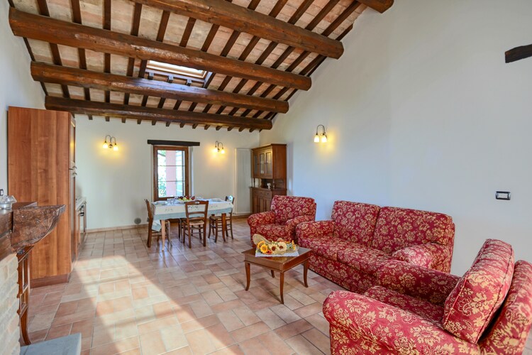 Set atop a hill with panoramic views of the Metauro Valley, this restored farmhouse apartment blends rural charm with modern comfort. Original terracotta floors, exposed beams, and cozy interiors offer an authentic countryside feel. The private terrace is perfect for outdoor meals, while the shared garden, BBQ area, and small pool with hydromassage invite moments of relaxation. With play areas, a football/volleyball field, and pet-friendly access, it’s ideal for families, couples, and furry companions alike.