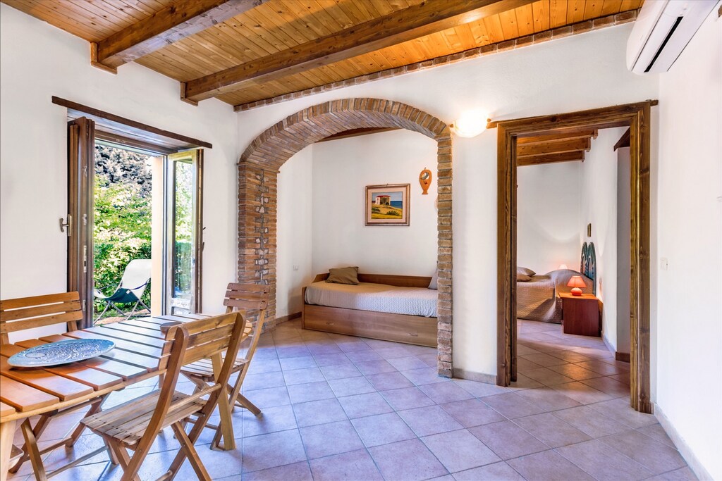 The fantastic private sandy beach with the blue sea borders directly with the communal wooded garden of the complex. The small complex consists of several apartments but offers enough space and privacy for all guests.