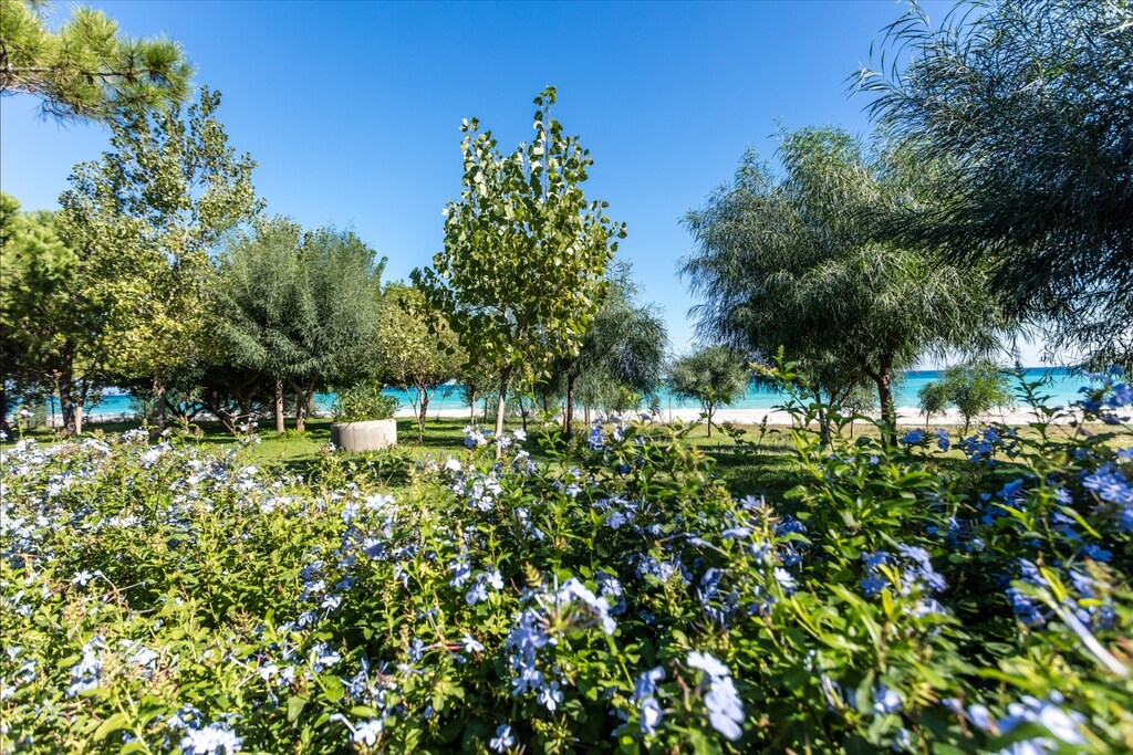 This freshly renovated first-floor villa apartment offers the perfect balance of spacious comfort and seaside charm. With two sea-view balconies and a private garden, you can enjoy golden sunrises over the Ionian Sea and peaceful evenings surrounded by Mediterranean greenery. Whether you're sipping espresso on the terrace or relaxing in a hammock by the beach, this serene setting is designed for total rejuvenation. The villa is part of a tranquil, low-density complex with direct access to a private sandy beach.