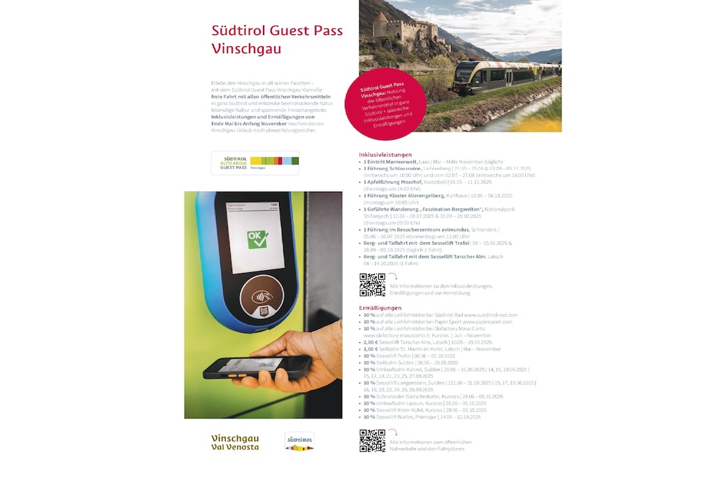 Highlight: South Tyrol Guest Pass Vinschgau with numerous discounts