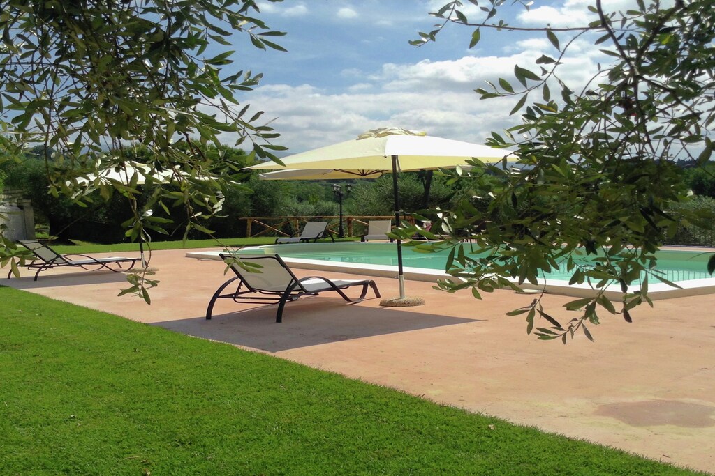 At the swimming pool in the lower area of the estate and in the midst of nature and olive trees with beautiful panoramic views.