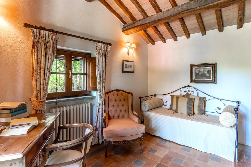 The Monte house with a large fireplace extends over 3 floors with unique and characteristic wooden stairs. It is cosy and intimate while being part of an ancient Umbrian Borgo from the 1500s with a total of 6 houses.