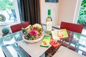 Met een warm welkom zijn we ontvangen, vriendelijk en rondleiding gekregen. Er stond een leuke welkoms kaart met een fles wijn en chocolade, de koffie stond klaar in een woord geweldig. De accommodatie was prima, luxe bedden en luxe stoelen, heerlijk kunnen relaxen. Omgeving was prachtig, zo vanuit de tuin de bossen in, heerlijk en zeker voor herhaling vatbaar.