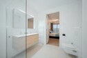 The apartment has three inviting bedrooms, including a master bedroom with an en-suite bathroom. This private bathroom includes a shower, washbasin, and toilet. The other two bedrooms are equally well-appointed with double beds, and the apartment also offers a second bathroom with a shower, washbasin, and toilet, ensuring plenty of space for everyone.