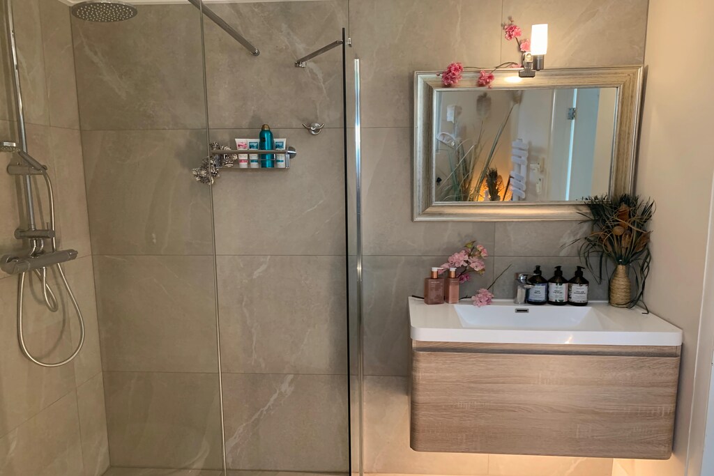 We hebben genoten!!! Het was prettig binnen komen hier, De radio aan, een kaarsje, wijntje, koeken zelfs voor de honden was wat lekkers!! HÃÃl erg leuk, Daardoor voelde wij ons Ãcht welkom, Ook werden we met een bordje geÃnformeerd dat we aan de overkant verse eieren konden halen, Er is zelfs een handgelapparaat bij de voordeur aanwezig, om je handen te kunnen ontsmetten nu de covid problematiek actueel is, Hoe attent, Ook al zijn de huiseigenaren niet aanwezig, toch voel je de persoonlijke touch en dat het belang van de gasten voorop staat, Wat lagen de bedden heerlijk, Echt werkelijk alles was aanwezig en van alle gemakken voorzien, Een sjoelbak, dozen met spelletjes, in de keuken ontbrak het aan niets en wat is ie ruim, een smart tv, uitgebreide badkamers, Noem maar op, Wij komen graag nog eens terug, Een heerlijk ruim huis in een fijne omgeving,