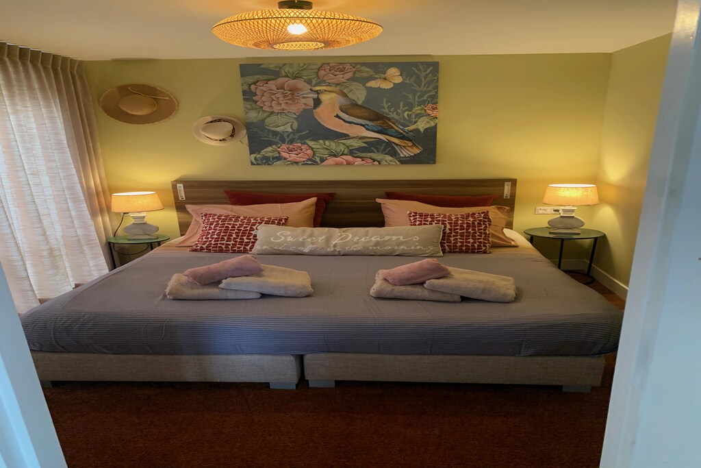 We hebben erg genoten. Prima voorzieningen en voldoende ruimte. Prachtige, zeer complete keuken en 2 badkamers, waarvan 1 heel mooi en modern ( wel probleempje met afgebroken doucheknop, waardoor het water nu maar op 1 temperatuur kon, maar dat zou hersteld worden voor de volgende huurder). Bedden fijn opgemaakt en ook handdoeken en keukendoeken aanwezig. 3 verschillende koffie-apparaten, zodat ieders voorkeur aanwezig was. 2 puntjes, waar verbetering mogelijk is en wat ons heeft weerhouden van een 5-sterrenbeoordeling Er zaten niet overal horren (wel veel muggen en vliegen!) en we misten in de tuin (ondanks de loungeset en de picknicktafel) een paar stevige stoelen, om te zonnen of op het gras te zitten. De stoelen die er waren, waren erg oud en/of er zaten al barsten in, zodat we er. Iet goed in durfden te gaan zitten.