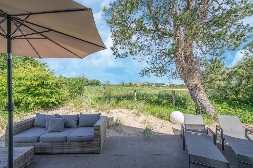 The dune villa is characterized by a hip and stylish interior, but where the beach feeling is immediately evoked by various elements! How about a drink and dinner together at the spacious table on the terrace with a unique view of the mill? The very wide garden has an unparalleled view of the dune lake and is very private, giving you the ultimate holiday feeling! Enjoy a nice book and a good glass of wine in the spacious lounge corner.