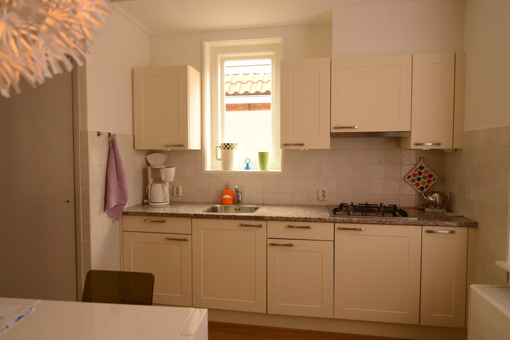 We werden zeer gastvrij onthaald. De kachel was al aan dus dat was meteen behagelijk. Het huisje lijkt aan de buitenkant zo klein maar is van binnen ruim. De keuken is zeer compleet ingericht. Zelfs een wasmachine. Het is een heerlijk stadje waar veel te zien is.