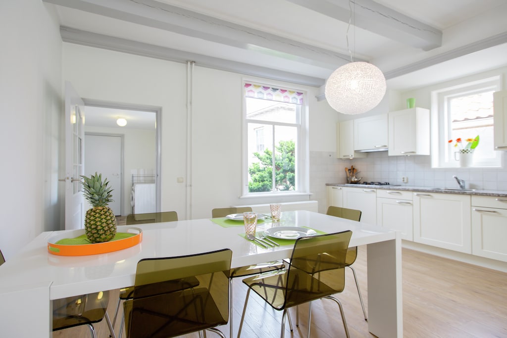 Mooi centraal gelegen. Buiten zitten is niet echt antrekkelijk. Positief dat we fietsen kunnen gebruiken. Beperkte kledingopbewaringsmogelijkheden in de kasten. Geen vriesvak in de koelkast. Geen oven in de keuken. Onpractische en te kleine badkamer. Weinig beddengoed. Inrichting iets te spartaans en te veel IKEA gevoel.