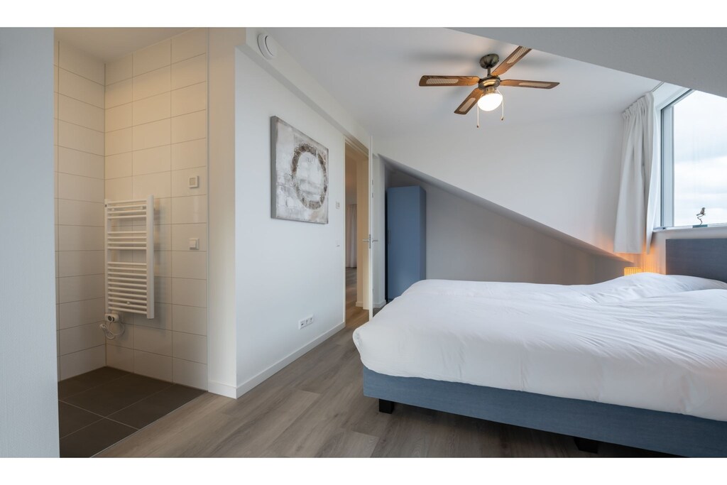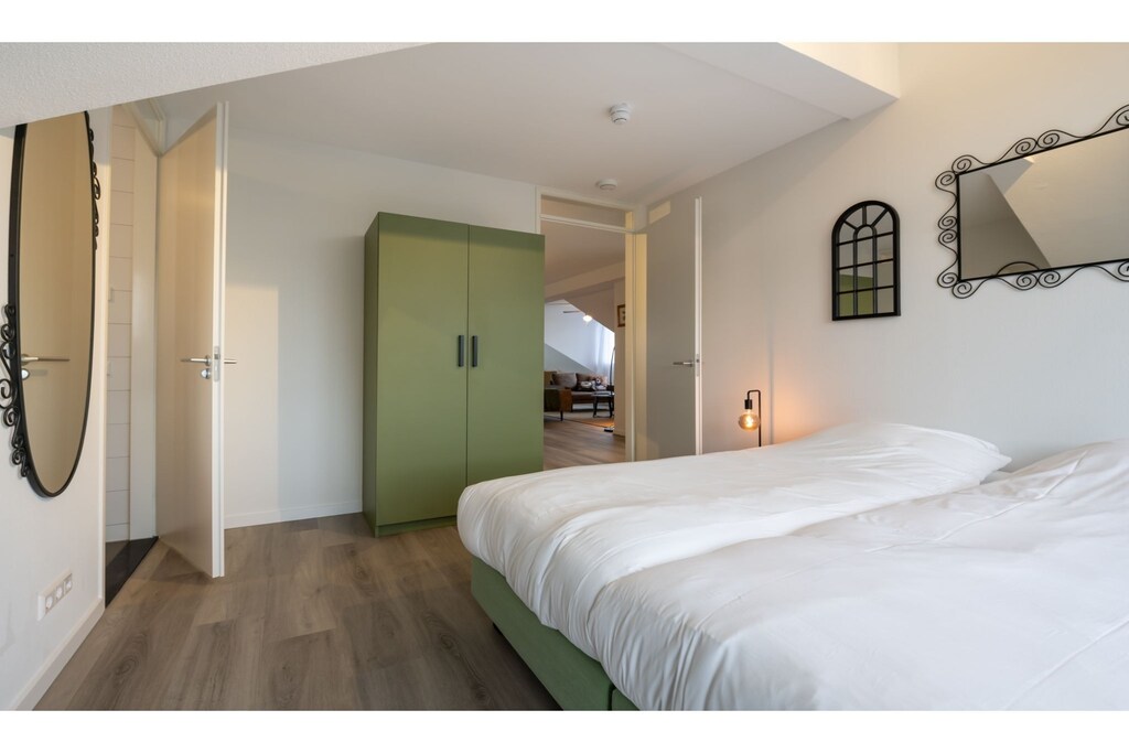 This penthouse is located on the third floor and is equipped for 4 people. The entrance provides access to two spacious bedrooms, each with two single box-spring beds. On arrival we ensure that the beds are freshly made for you. There are two modern bathrooms in the penthouse. One bathroom has a walk-in shower, toilet and sink. The second bathroom has a walk-in shower and sink. In addition, there is a separate guest toilet. The spacious and attractively furnished living room has a comfortable sitting area and a Smart TV with foreign channel. From the living room you also have access to the spacious terrace on the northeast with luxurious, comfortable garden furniture. The spacious, luxuriously fitted kitchen is equipped with comfortable built-in appliances, including an induction hob, a combination microwave, a refrigerator with a freezer compartment and a Nespresso coffee machine. There is also a separate room with a washing machine and dryer. There is room for your (electric) bicycles in the indoor storage room.