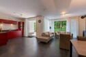 The apartment is on the ground floor and has a spacious living room, 2 luxurious bathrooms, a gas fireplace and a balcony. There is a laundry room with washing machine and dryer on the same floor.