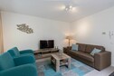 The interior of the home is designed with a coastal theme, with shades of blue in the living room. The living room also features a seating area by the fireplace, where you can relax and enjoy cozy evenings. In the kitchen, you can prepare home cooked meals and enjoy them together on the dining table. The property also includes a roofed terrace, where you can unwind with a glass of wine, and a balcony overlooking the beautiful views for privacy. Additionally, there is a washing machine available for your laundry needs so make sure to pack light and a highchair for little guests. On-site parking and storage are also provided for your convenience. In short, both young and old will enjoy staying here.