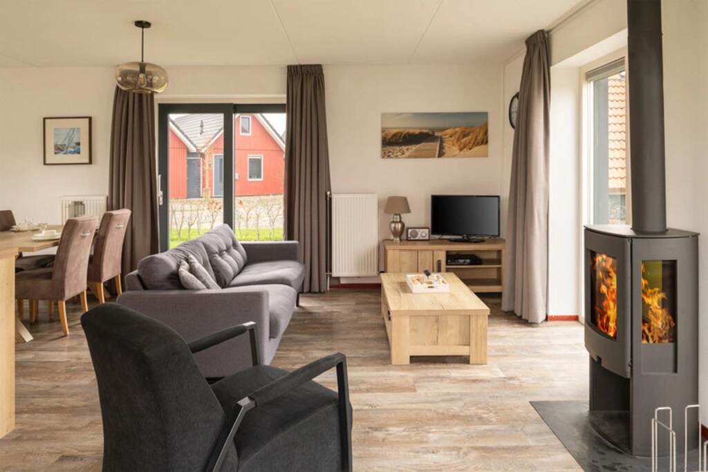 Open the garden doors to your private terrace with a lounge set—perfect for quiet mornings or sunset drinks. While the park remains under construction, its peaceful atmosphere adds to the charm. Just a short drive away, explore the historic harbor of Lemmer, where you’ll find delightful waterside cafés, fresh seafood, and cozy Dutch eateries like De Wildeman. A quiet, pet-free retreat in Friesland awaits—modern comfort meets natural beauty.