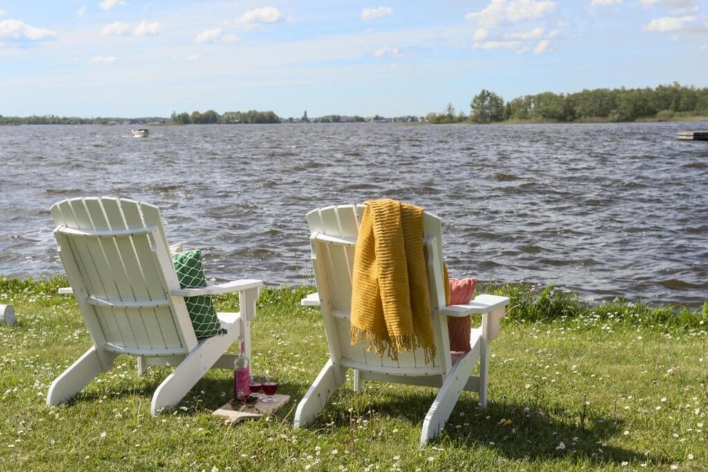 Step into this elegant waterside retreat, where large windows, high ceilings, and stylish interiors create a bright, airy atmosphere. Designed with comfort in mind, the home features spacious en-suite bedrooms with plush box-spring beds and private TVs. The open-plan kitchen is fully equipped, making it easy to whip up a quick breakfast or a cozy dinner. Slide open the glass doors and enjoy your morning coffee on the terrace overlooking the tranquil water, complete with garden furniture and a charming outdoor fireplace.