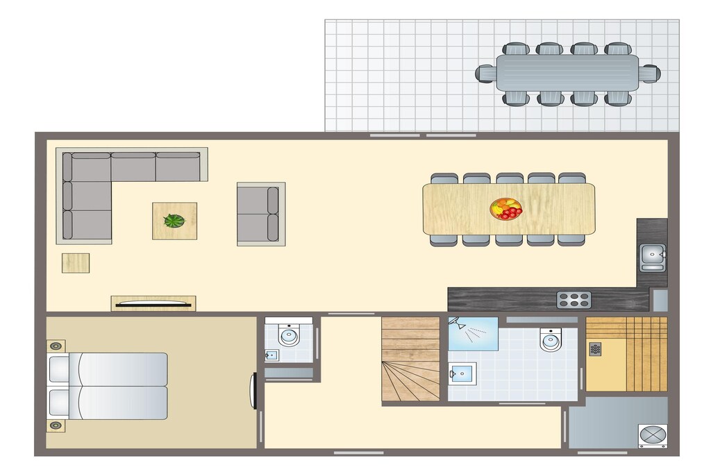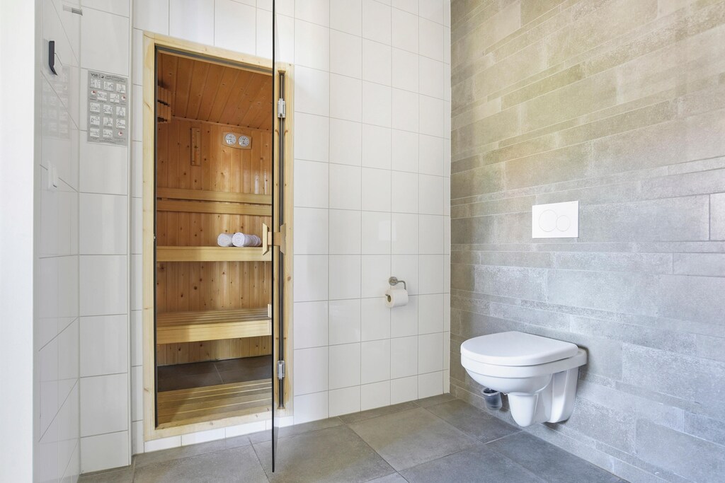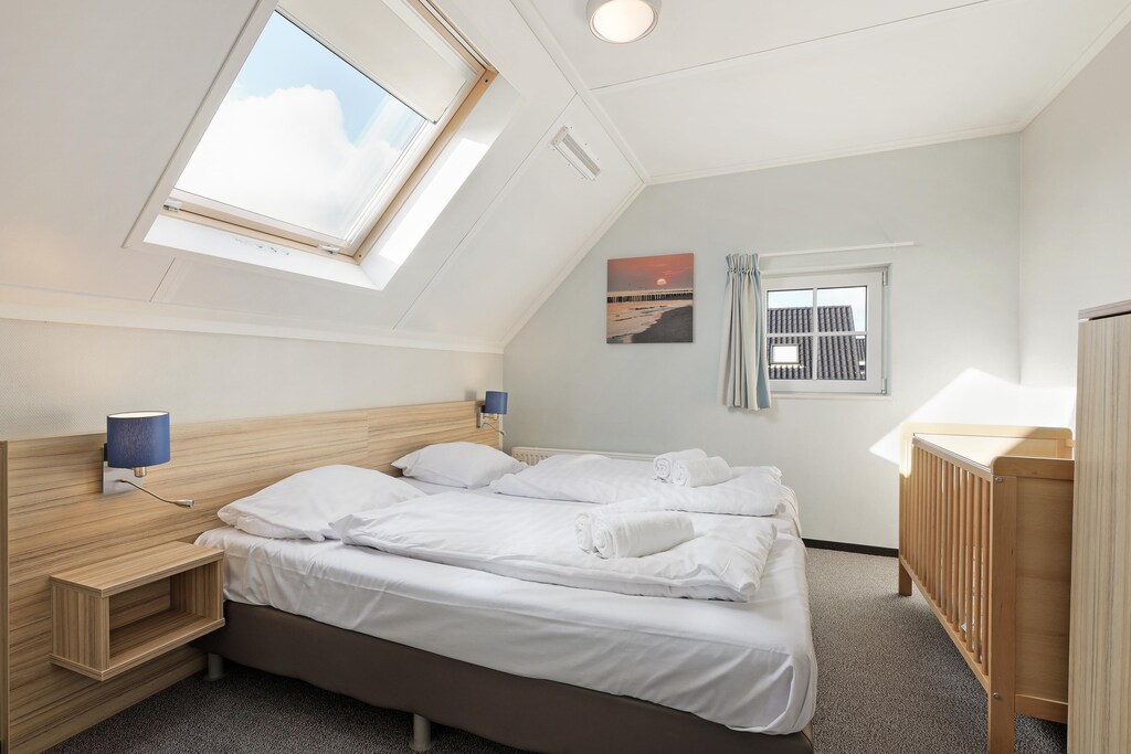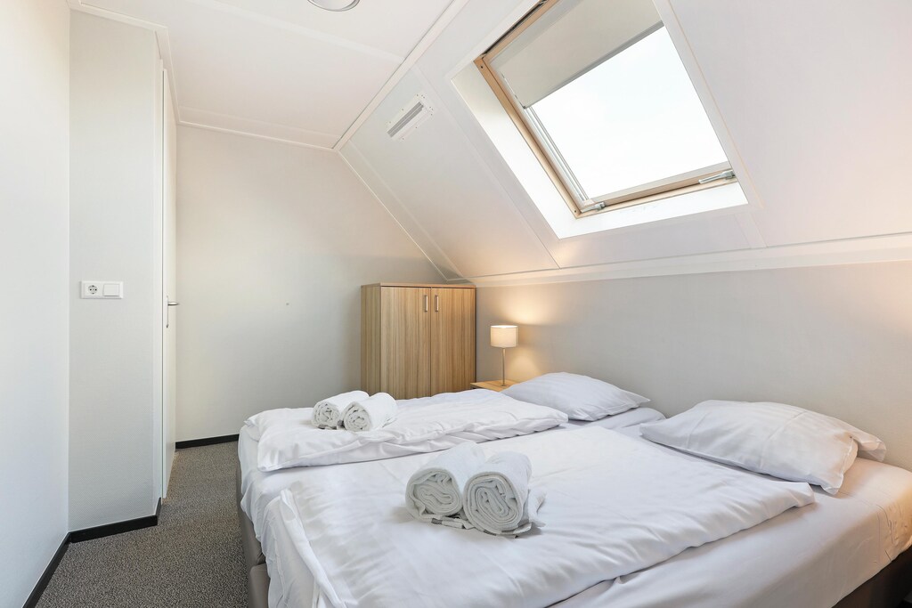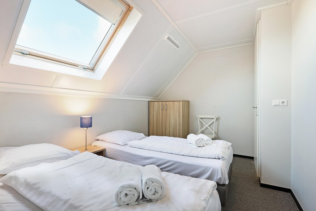 The two-storey holiday home is comfortably furnished with all the modern conveniences. On the ground floor, you'll find an attractive living room with TV. The open kitchen has a dishwasher and a (combination) microwave. There is also a bedroom with two single box-spring beds in a double-bed arrangement with TV. The hall has a separate toilet and a lovely sauna. to take full advantage of your well-deserved holiday. An indoor storage room with a combined washer/dryer completes the ground-floor facilities. On the first floor are four more double bedrooms. Each has two single box-spring beds, with one bedroom in a double-bed arrangement. There are also two bathrooms. One has a bath with a shower and the other has a sun shower. There's a separate toilet on the landing.
