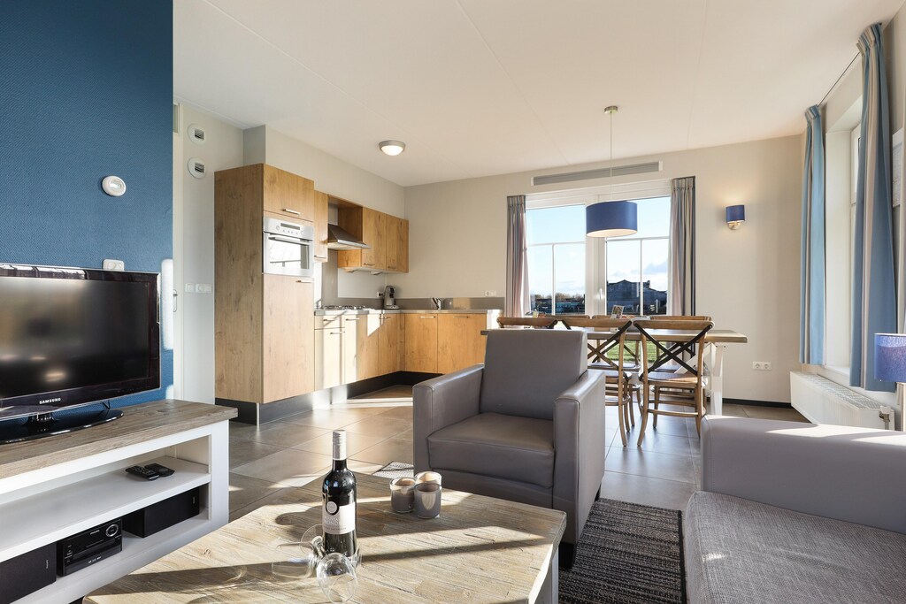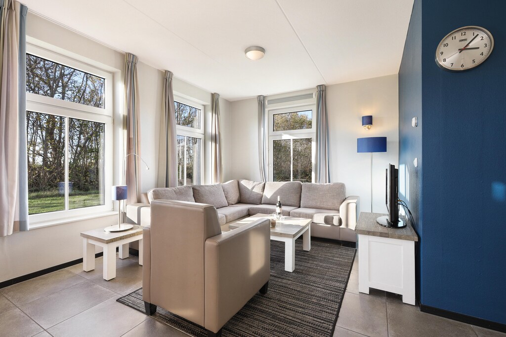 Located in the scenic Strand Resort Nieuwvliet-Bad, this charming detached holiday home offers the perfect mix of comfort, privacy, and convenience—just 700 meters from the beautiful North Sea beach and 3 km from the cozy village of Nieuwvliet. Inside, you’ll find a modern living room with a TV, an open kitchen with all the essentials including a dishwasher and combi microwave, and a ground-floor bedroom with an ensuite and smart layout. Upstairs are two more double bedrooms and a bathroom with a bath and shower—ideal for families or friends.