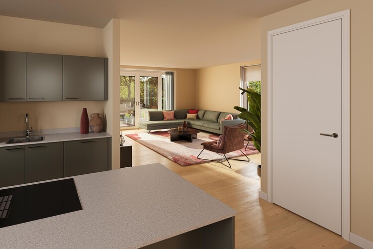 The heart of the home is a warm and stylish living area with a comfortable sitting space and smart TV for your favorite streaming shows. The adjoining dining area flows into a sleek, open kitchen complete with a cooking island, combi oven, dishwasher, fridge with freezer, and both capsule and filter coffee makers. Large patio doors lead you outside to a furnished terrace—perfect for enjoying long afternoons in the sun or a quiet morning coffee.