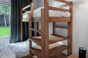 This beautifully furnished lodge accommodates up to 4 adults and 2 children. The living area is warm and welcoming with floor heating and a smart TV with streaming, while the modern kitchen comes equipped with a dishwasher and combination microwave. The three bedrooms offer flexibility: two with box spring beds (double or twin setup), and a third with a cozy child-sized bunk bed (80x170 cm). The bathroom features a walk-in shower, heated floors, and a toilet—perfect after a day outdoors.
