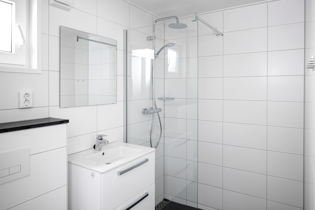 Spread out across two levels, the villa features a cozy living room with streaming TV and underfloor heating throughout for year-round comfort. The modern open kitchen is fully equipped for easy meal prep, while four bedrooms offer flexible sleeping arrangements for families or groups—two on the ground floor (including one with a bunk bed), and two upstairs. With two sleek bathrooms featuring walk-in showers, plus an additional toilet on each floor, there’s ample space for everyone to unwind with ease.