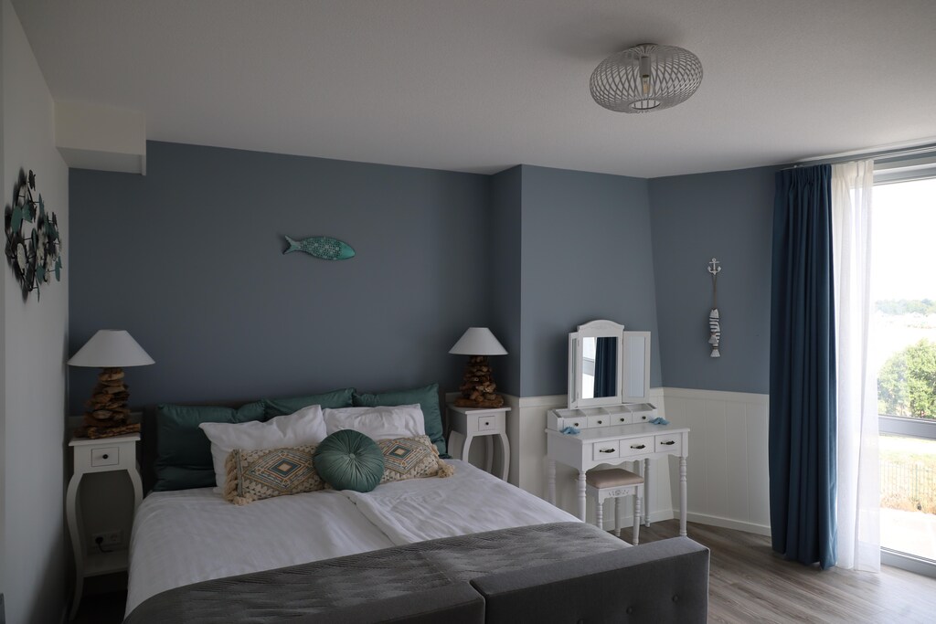 Nestled on the serene Gorishoeksedijk in Scherpenisse, Zeeland, this modern apartment offers direct access to the Oosterschelde National Park—just 20 meters away. Located on the second floor (with lift access), it features panoramic sea views from both the spacious living area and private balcony—perfect for watching sunsets. Inside, the apartment is styled with a clean, coastal ambiance. The open kitchen is fully equipped, and the living room includes a seating area, TV, and dining space with sea views. A private sauna adds a spa-like touch after a day of exploring. Nautical décor and high-quality furnishings complete this inviting seaside retreat.