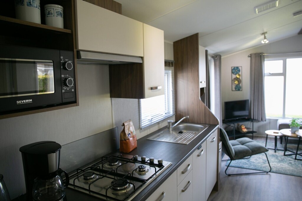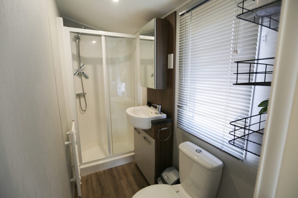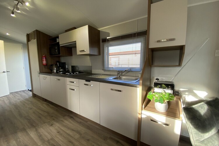 This modern, fully furnished chalet offers a comfortable and stylish retreat, ideal for up to 4 guests. The open-plan design combines a spacious dining and sitting area, creating a welcoming atmosphere for relaxation. The chalet is equipped with modern amenities, including a Smart TV, DAB radio with a CD player, and Bluetooth connection for your entertainment needs. The kitchen is well-appointed with a 4-burner gas cooker, fridge, coffee maker, and kettle, making it easy to prepare meals during your stay.