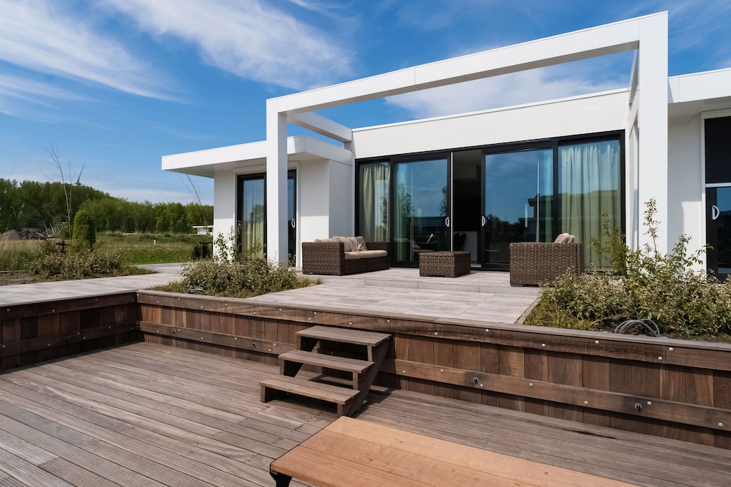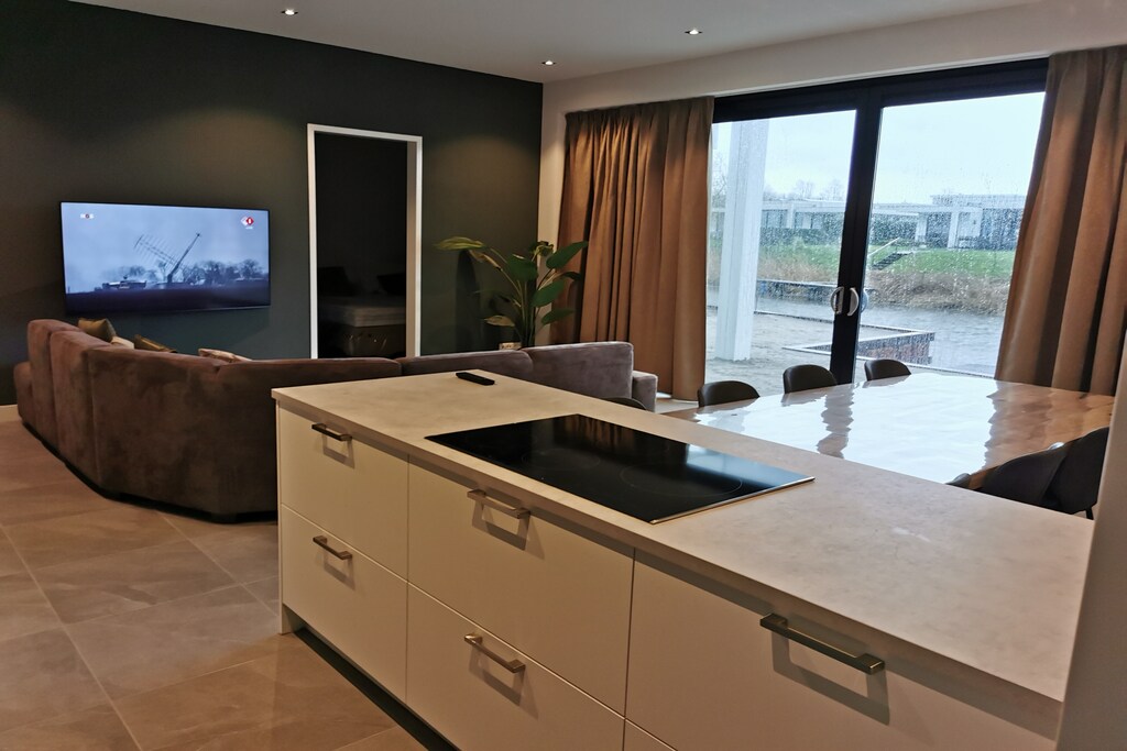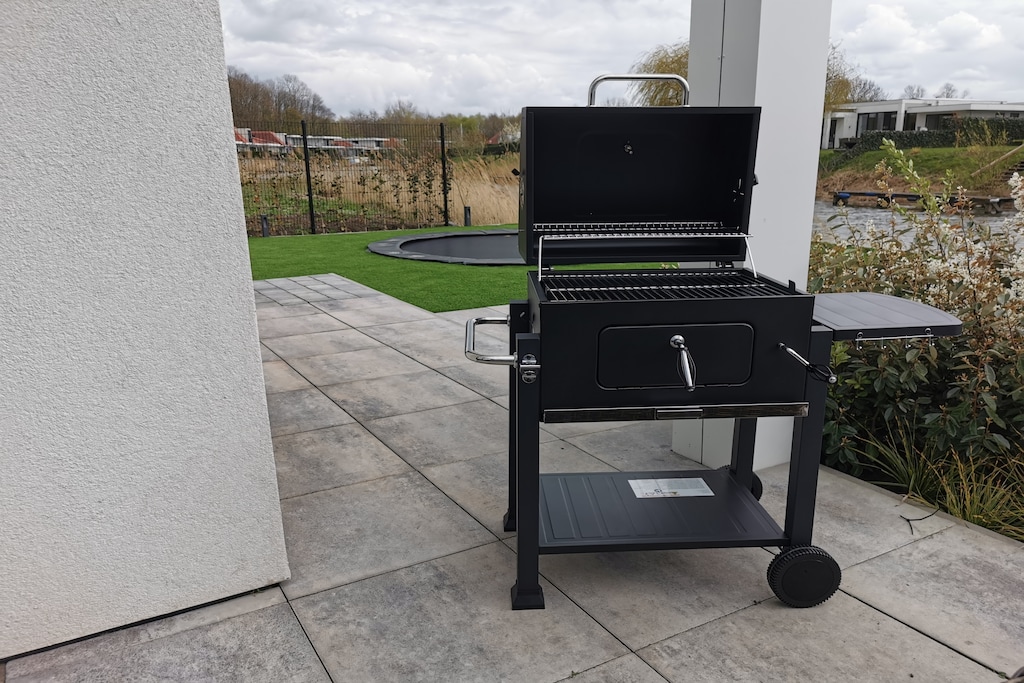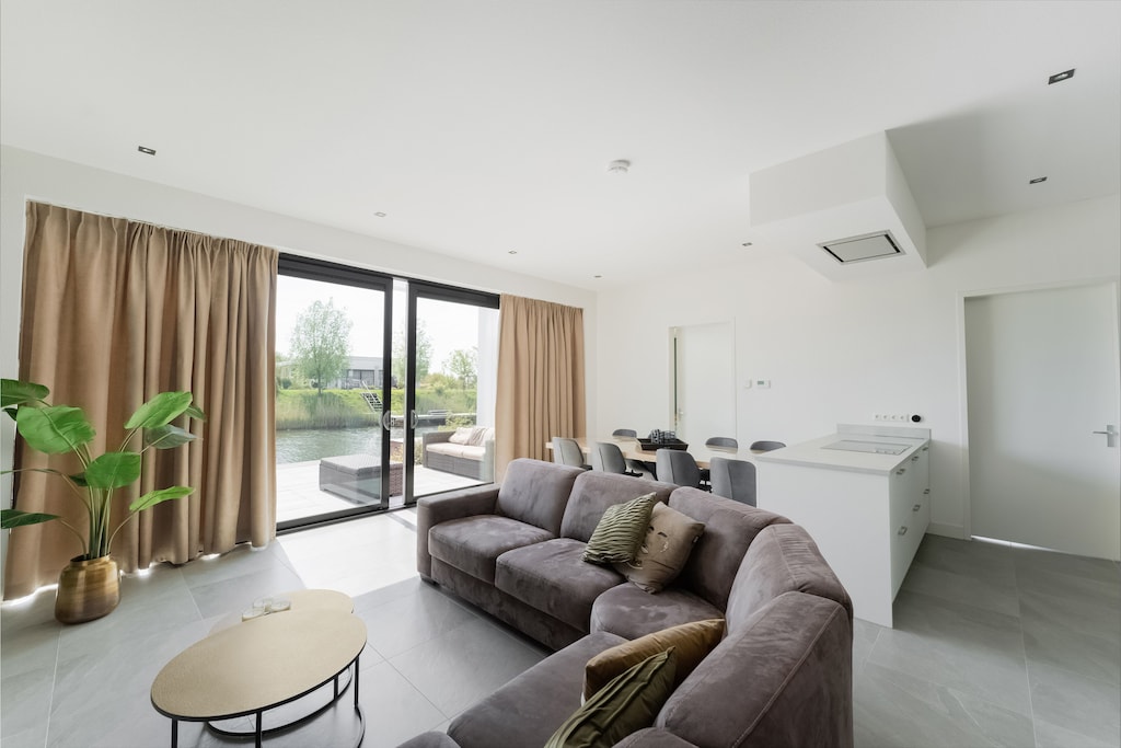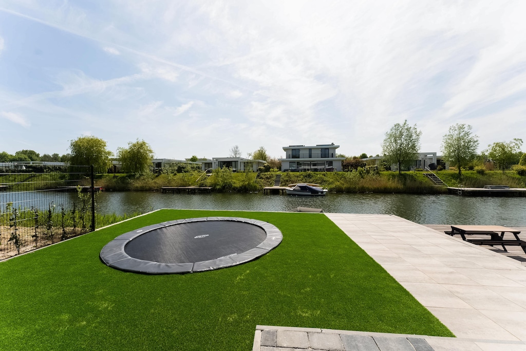This contemporary villa in Zeewolde offers a serene setting surrounded by greenery and water, perfect for a relaxing getaway. The thoughtfully designed living space opens to a terrace and garden where you can enjoy your meals or simply unwind in the sun. A private jetty offers a picturesque spot to relax by the water, while little ones can enjoy the trampoline or play safely with a high chair and cot available. Whether you're hosting a barbecue, relaxing indoors with air conditioning, or soaking in the walk-in shower, this villa has comfort at its core.