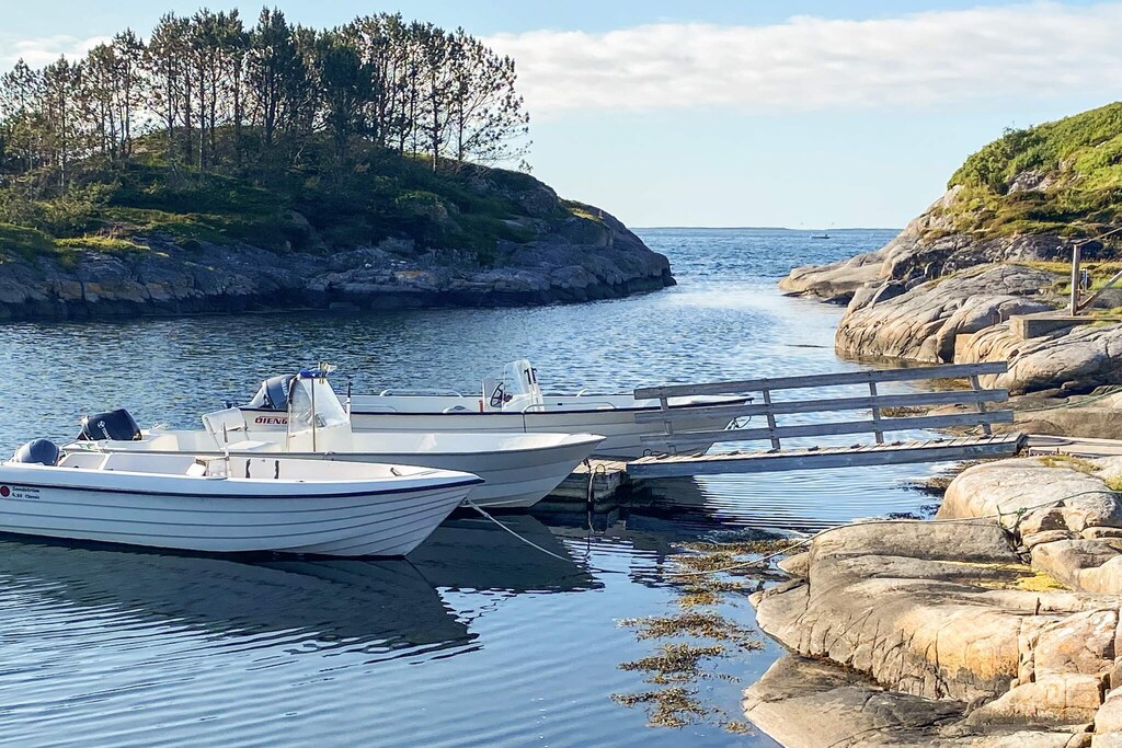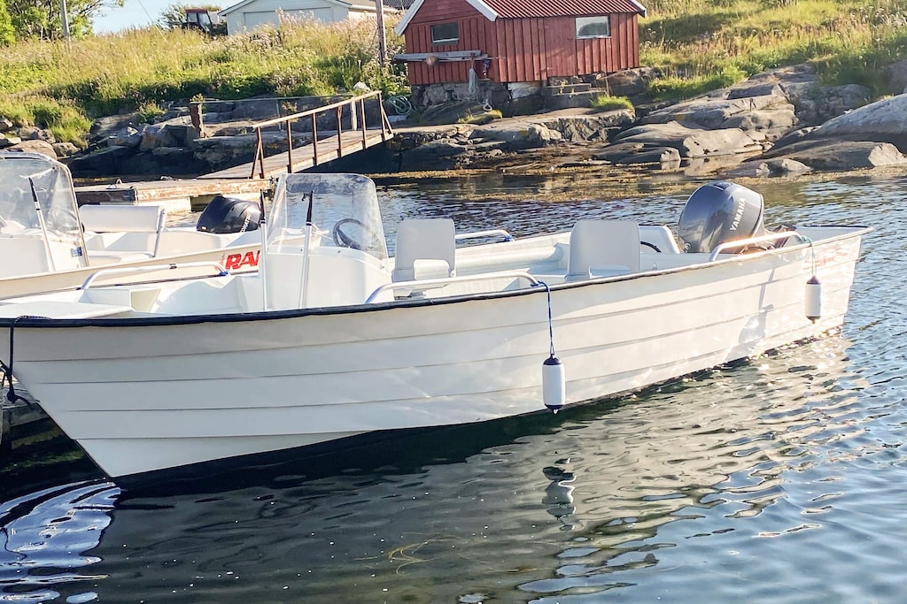 Spacious holiday cottage with a spectacular ocean view towards Hustadvika and the sunset. It is somewhat steep down towards the sea, where you can do inshore fishing from the rocks. Not suitable for small children. Boats with motors for rent for fishing in one of Norway's best fishing waters: • 1x 18 foot Rana 540 SL with 30 HP engine, chart plotter, GPS, echo sounder • 1x 17 foot Sandstrøm 495 with 25 HP Evinrude E-tec, chart plotter, GPS, echo sounder • 1x 21 foot Øien 620F with Yamaha 50 HP, Garmin GPS/echo sounder, flushing pump, rod holders All boats are located by a floating dock 300 meters from the house. Good conditions for diving - Hustadvika has some of the greatest "seaweed forests" along the Norwegian coast. The house is located 1,5 km from the National Tourist Route between Bud and Kristiansund. 6 km to the fishing village Bud with restaurant, Coastal Fort Museum, shops and divers club. Life jackets available for rent.