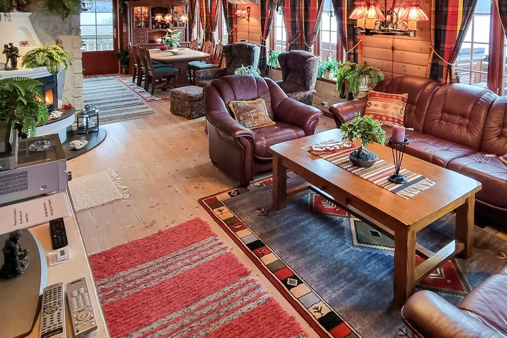 Beautifully located holiday cottage with a panoramic view of the sunset, the islands and the steep mountains along one of the world's most beautiful fjords - Hjørundfjorden. Midsummer you have sun all day, with sunrise at 04.30 and sunset at 23.30. The house is only 80 meters from the fjord with nothing to block the view. A couple of other holiday cottages are located behind. You can sit on the 50 m² open terrace or the 15 m² covered terrace and watch cruise ships sail by. Lovely garden and yard with lighting. The holiday house is well equipped with gas grill (outdoors), some TV-games (Norwegian and English ones,Playstation 3 with some German games, Gamecube machine with 5 games, Gameboy pocket with approx. 35 games), internet via fibre cable with 100 Mbits high speed, coffee machine, waffle iron, toaster, electric kettle, griddle, blender, etc. 10 m² large awning. The sleeping arrangement in the upstairs living room are two folding extra beds with comfortable mattresses. Same type of extra bed in in the bedroom. 2 cots. Shower in the indoors whirlpool for 1-2 people. The outdoor massage bath fits 6-7 people, and you can regulate the temperature while enjoying the spectacular view. In the bathroom, there is a shower adjacent to the bath tub. 200 meter to a small harbour, where a motorboat is available for rent (including life jackets). The boat has automatic drainage, inboard diesel engine (not expensive in use), large and closed cubicle that fits 10 people, 2 sonars, chartplotter, radar, autopilot, reel, 2 deck lights and headlight on the roof, 2 rod holders, fishing equipment, pyro-galley, toilet, walkie-talkie, vhf radio, and stereo with an aux entrance for mobiles. A covered fish cleaning table at your disposal. The fishing conditions in the fjord are great. Outdoors swimming pool in summer and restaurant 10 km. Small beach with shallow water 1 km. Signed mountain hiking trails, 1 km to the closest. 15 km to the town of Sykkulven. The salmon and trout river Straumselva 18 km. 4 km to a lake with small trout. Alpine skiing in winter 20 km away. Hellesylt is 60 km away, where you can take the gorgeous cruise ride to Geiranger.