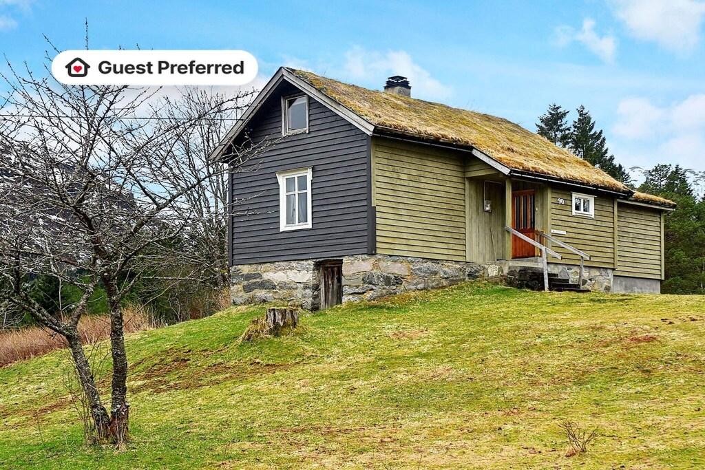 Secluded and freely situated holiday home on a hilly natural plot. Final cleaning and linen included. Homely holiday home. Living room with wood burning stove, satellite dish with Astra1 for German and European TV channels and internet for streaming. Folding single beds. On the loft there is a bed breeze. Cot and highchair available on request. 6.6 km to shallow beach. Scenic surroundings and the opportunity for great trips into the mountains. The holiday home's location is well suited for taking day trips to Førde, Sogndal, the glaciers in Jostedalen and Fjærland, the Glacier Museum in Fjærland and Bokbyen in Mundal. Førde, 20 km away, with all services. Winter activities at Jølster Ski Center with ski lifts / alpine slopes (2.7km). 3.2 km to Jølstra Museum. Fishing opportunities in fresh water: 1.6 km to Jølstraelva with large trout, 1 kg. One of northern Europe's best fishing lakes, Jølstravannet 3.5 km away with trout. Remember fishing license when fishing in fresh water. At Vassenden, 3.5 km away, it is possible to rent a boat to fish in Jølstravannet. For boat rental: Please seek out boat rental after arrival at the holiday home.