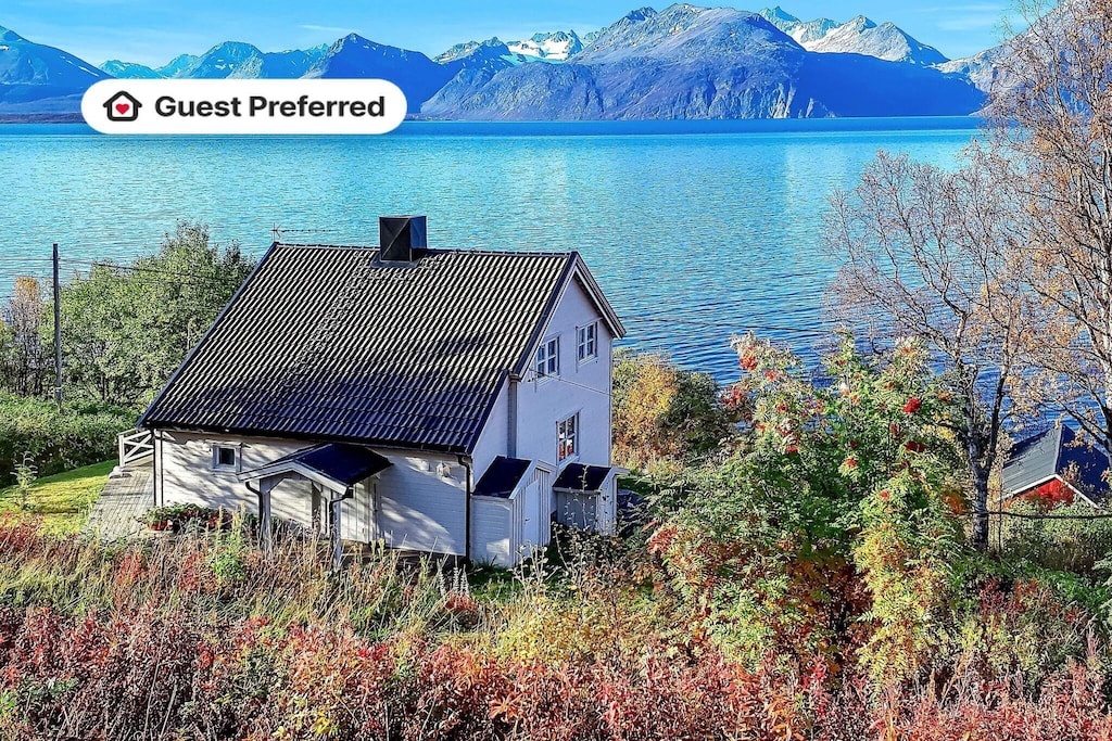 Holiday home by the Lyngenfjord with panoramic views of the beautiful fjord landscape and the mighty Lyngen Alps, Europe's northernmost alpine area. Northern lights in winter and midnight sun in summer. The house was built in 1952 and renovated in 2002. Newly renovated bathroom. On the ground floor there is a kitchen, living room and bathroom. In the attic there are three bedrooms; one with double bed, one with double bed and one single bed and one with single bed. In the living room there is a wood stove, TV with Norwegian and international TV channels. Free internet. The house is located 100 m from the fjord. From both the house and the terrace there are magnificent views of the beautiful fjord landscape in all seasons. The heather alps have glaciers on the mountain tops and is an impressive sight. Jiehkkevarri as the highest mountain rises 1833 masl. The mountain area invites to wonderful mountain and climbing trips. In winter you can sit on the terrace and enjoy the northern lights in all shades of color in the polar sky. In summer, the midnight sun is a great sight and makes the night as bright as the day. A large wilderness area behind the house invites to beautiful walks along the fjord and in the mountains. There are several fishing lakes here, and in the fjord there is good sea fishing. 30 km to Reisadalen with the salmon river Reisaelva and Reisadalen National Park. 12 km to Olderdalen with grocery store. The house is located down by the fjord, while the main road E6 goes behind the house. Parking by the main road 50 m opposite the house.