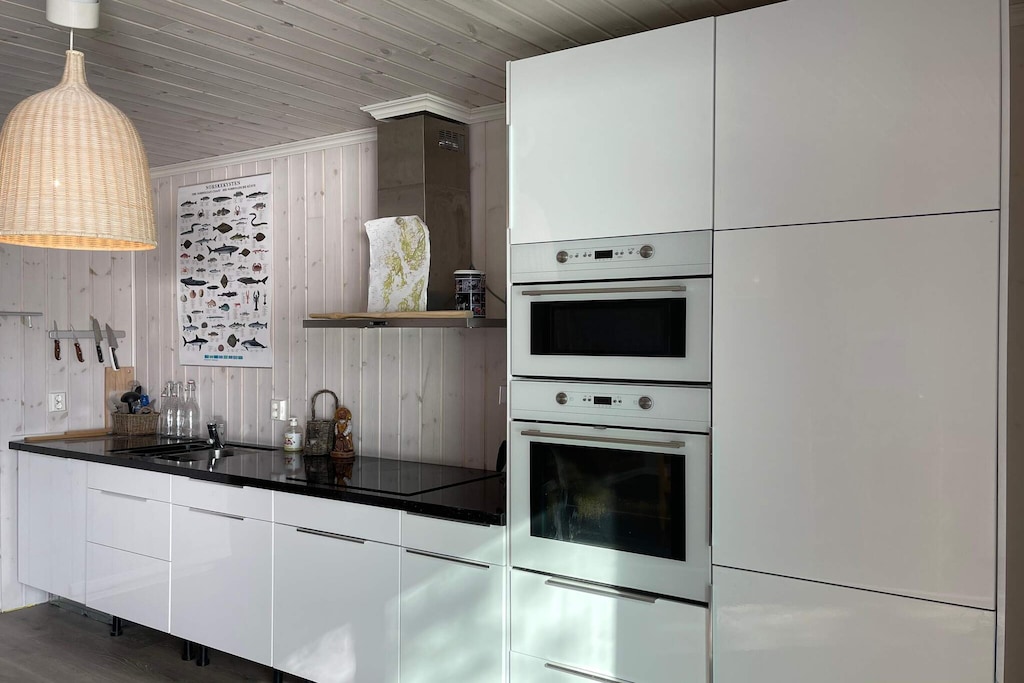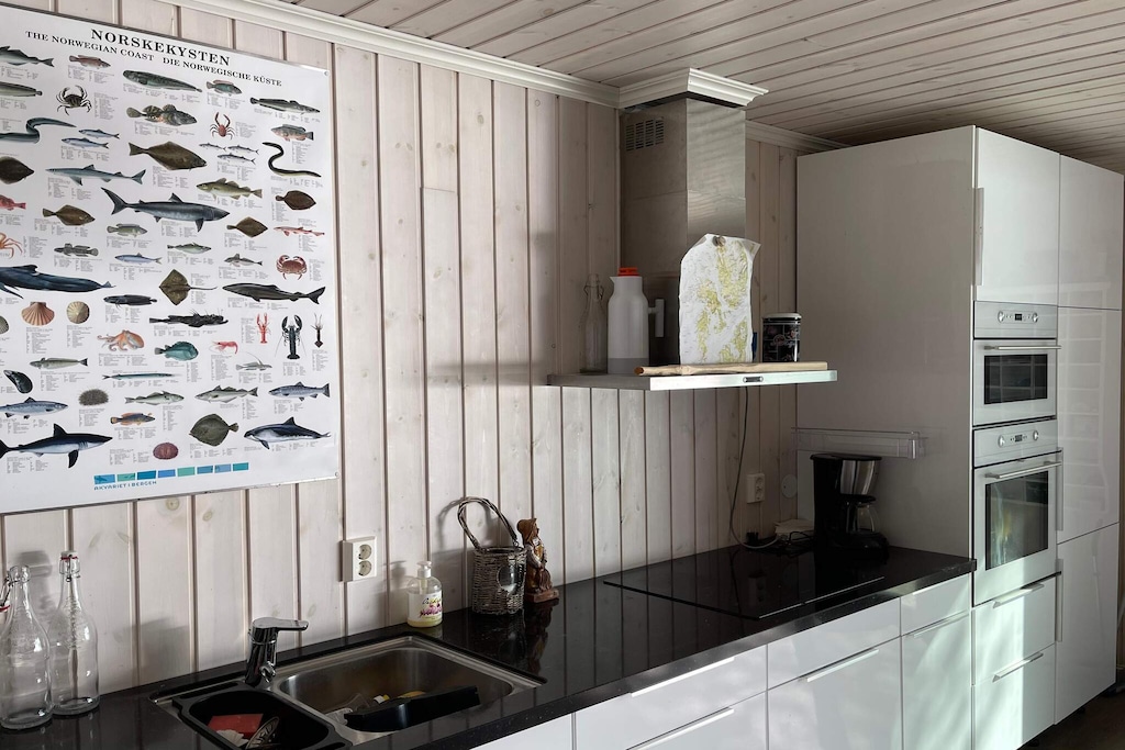 Cozy fisherman's cabin right by the coast, with a large terrace in beautiful surroundings. Perfectly suited for sport & hobby fishermen, but also family holidays. Please note: To rent the house, you also need to rent the boat. The cabin has an open kitchen and living room solution on the ground floor with what you need for a successful fishing holiday. Windows facing the fjord provide good light. There are 3 bedrooms. TV with German, Norwegian and international TV channels as well as high-speed internet via fiber. If the weather is too rough to go out to sea, it is always possible to find a good fishing spot inland. Boats are Sting 600 20 feet with 60hp echo sounder, chart plotter, GPS, and Hasle 11 feet with 9.9 outboard 4 strokes. Please note that a boat driver's license is required for boats larger than 25 feet and 25hp if you were born after 1980. Somewhat steep the 75 meters from the car park to the holiday home. For NOK 500, - the owner will drive the luggage to/from the holiday home. If you want to rent the ATV, the price is NOK 4,000 per week.