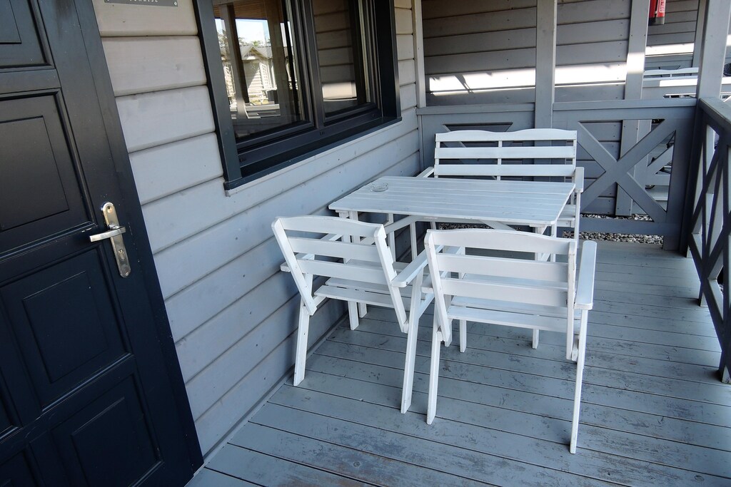 In front of each cottage is a terrace (9m2) with garden furniture.