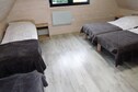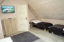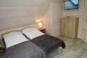 The houses are two-story. On the first floor there are two bedrooms: a larger one (for 4 people), with four couches, bedside cabinets and a TV SAT (32") and a smaller one (3 people) with three sofa beds and bedside cabinets. It is possible to move or combine the beds.