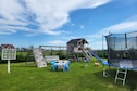 The property features a recreational area (table tennis, table football, darts). There's also a sports field (volleyball, basketball), an attractive playground, and a recreation area with a stocked pond (free fishing) and a bonfire area.