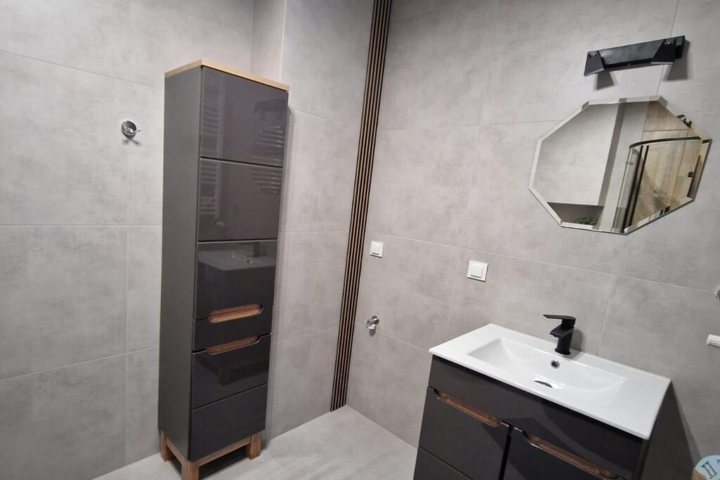 A comfortable apartment with air conditioning, located on the 3rd floor (there is an elevator) of a small building. Very close to the sea. The apartment has a comfortable balcony with a set of lounge furniture. The apartment consists of a living room connected to the kitchen, a bedroom and a bathroom with a shower. The living room has a 2-seater sofa and TV. The kitchen is very well equipped. The apartment has heating. Wireless internet is available.