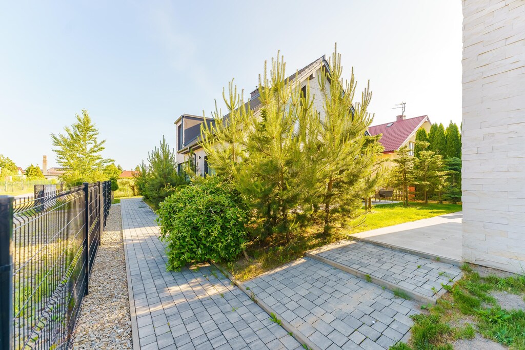 On the fenced property there is a playground for children (sandbox, swing, slide). One parking space for each house.