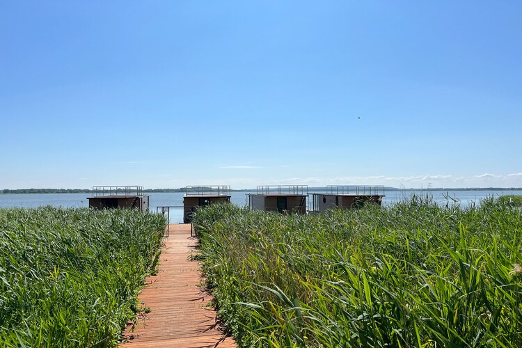 Questa casa galleggiante è un vero affare! La terrazza sul tetto è perfetta per foto al tramonto e l'interno accogliente la fa sentire come a casa, Mi sono piaciuti molto i momenti di relax vicino al lago, e la spiaggia è a pochi passi, Perfetta per una fuga tranquilla con gli amici
