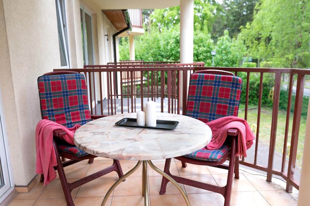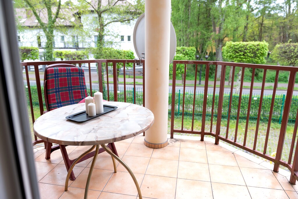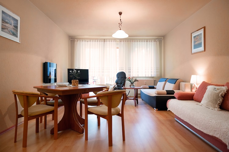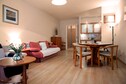 The holiday studio is a spacious living room that also serves as a bedroom and dining room. There are 2 comfortable, fold-out 2-person sofas, a TV and a table with chairs. The room is connected to the kitchen. Bathroom with shower. The apartment has a balcony with a set of garden furniture. Central heating. Wireless internet is available.